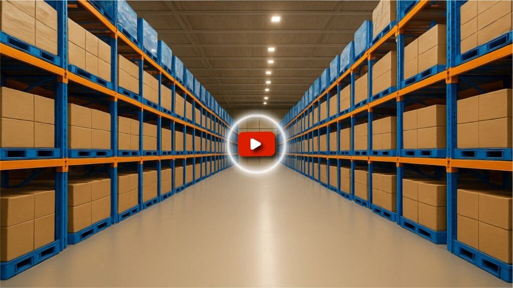 Industrial pallet racking system designed for high-capacity warehouse storage. Enhances space utilization and allows easy forklift access for smooth operations.
