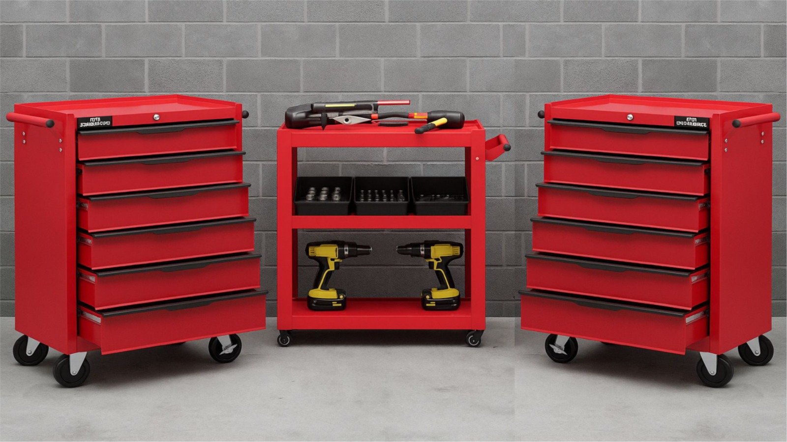 Mobile tool storage trolleys engineered for workshops and industrial facilities. Easily movable with multiple drawers for organized tool access.
