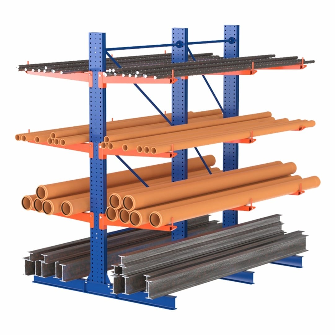 Cantilever rack storage is ideal for handling long, bulky, and odd-shaped items that don’t fit standard shelves. These racks provide open-front access, allowing efficient storage and retrieval of materials like lumber, pipes, and bars.