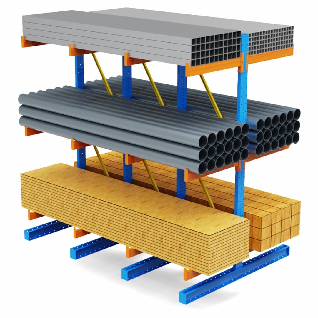 Designed to handle long and cylindrical items, the cantilever pipe rack is your best bet for storing plumbing supplies, conduit, and metal tubing without bending or clutter.