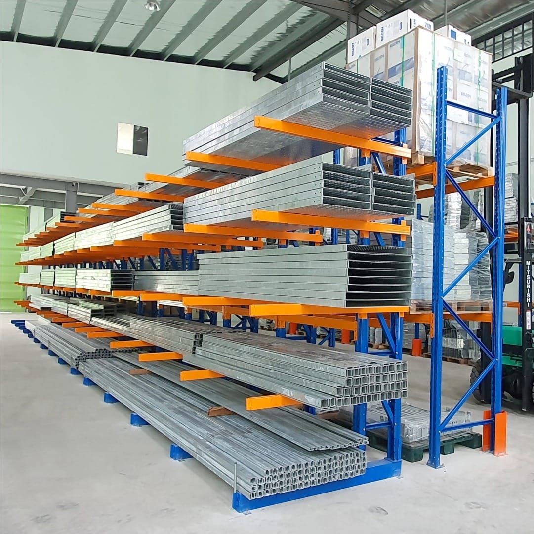 Use the cantilever material rack to store raw materials or production stock efficiently. These racks accommodate a wide range of shapes and sizes, keeping your inventory organized.